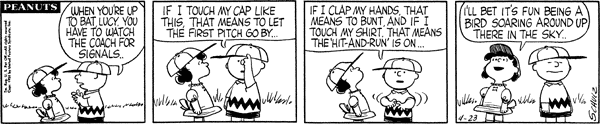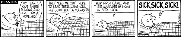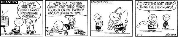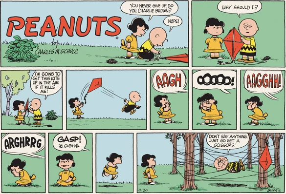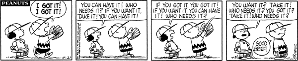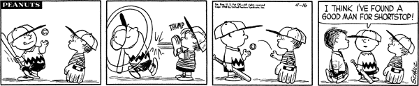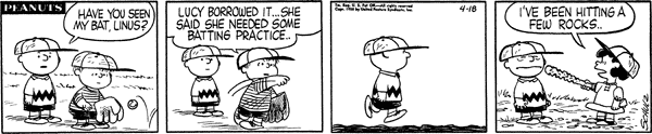 - April 20, 1958 (This strip is adapted in Happiness Is a Warm Blanket, Charlie Brown)