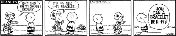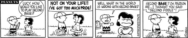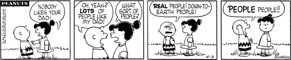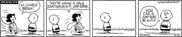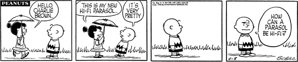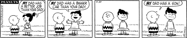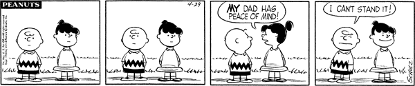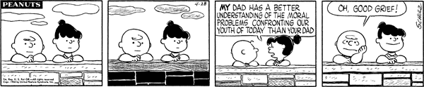 - April 28, 1958 (This strip and the following two strips are adapted in Good Grief, Charlie Brown: Peanuts, with Lucy replacing Violet)
