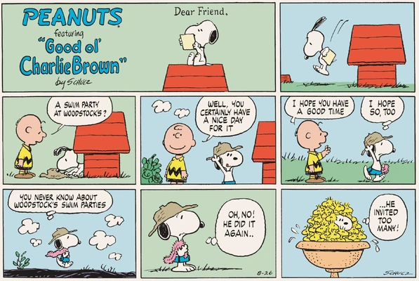 - August 3, 1979 (Ending of a storyline which was later adapted in A Charlie Brown Celebration. It was also later adapted as the book Get Well Soon, Charlie Brown!)