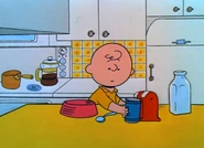 The kitchen in where the Brown family has breakfast, lunch and dinner. It first appeared in You're in Love, Charlie Brown painted yellow, but Peanuts purists consider the kitchen to be blue because of the timeless scene from A Charlie Brown Thanksgiving in which Charlie Brown prepares a Thanksgiving feast with the help of Snoopy and Linus. Charlie Brown does not usually cook in the kitchen, although he does prepare cold cereal and toast there.