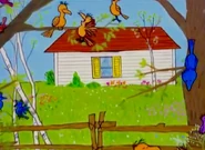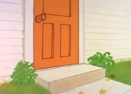 The main entrance and back yard has a step with two bushes around it, although in the TV specials You're a Good Man, Charlie Brown and It's Flashbeagle, Charlie Brown it appears to have a front porch with a rocking chair.