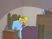 Sally's room has been painted pink in all the TV specials. It has a closet where Sally keeps all her clothes and shoes. In You're Not Elected, Charlie Brown, the room has wallpaper with roses on it. Sally's bed is similar to Charlie Brown's, it could be said that it is the same model. There is also a teddy bear in the room, as seen in a comic strip.