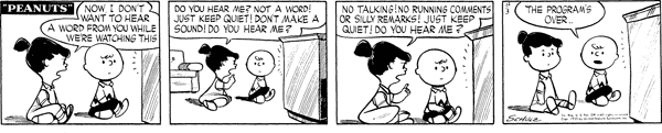 - December 3, 1953 (This strip is adapted in Good Grief, Charlie Brown: Peanuts, with Lucy replacing Violet)