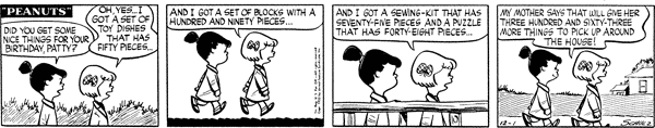 - December 29, 1953 (This strip is adapted in Good Grief, Charlie Brown: Peanuts, with Lucy replacing Violet)
