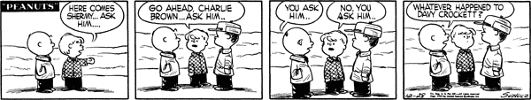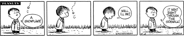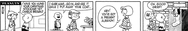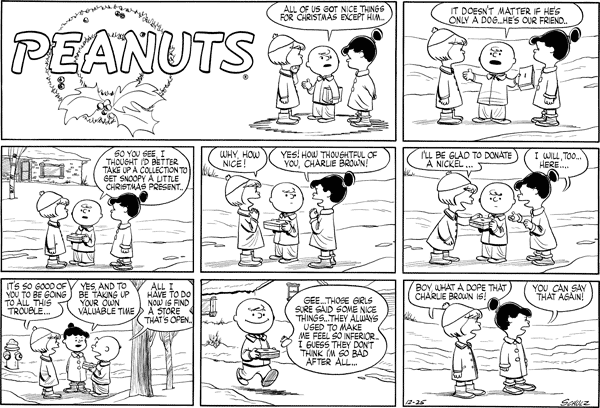 - December 3, 1955 (This strip is adapted in A Charlie Brown Christmas and in the episode "The Winter Games" from the 2014 French TV series Peanuts)