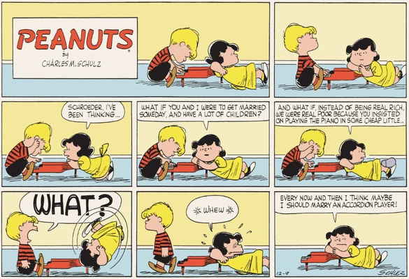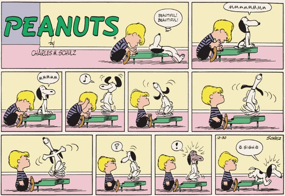 December 30, 1956 (This strip is adapted in A Charlie Brown Christmas and in the segment "Piano" from the 1983 The Charlie Brown and Snoopy Show episode "Snoopy's Football Career ")