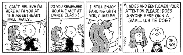 Emily and Charlie Brown attend the Sweetheart Ball in a 1996 comic strip.