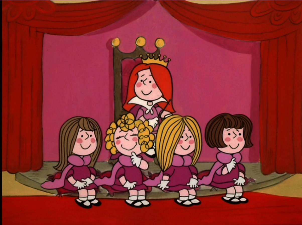 The four unnamed princesses are four very minor female Peanuts characters who has never appeared in the strip, but appear in the TV special, It's Your First Kiss, Charlie Brown. They are four very beautiful girls who are the homecoming princesses of their school's homecoming event. They are mainly seen with the Little Red-Haired Girl.