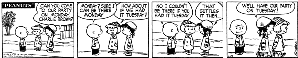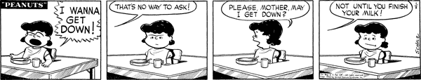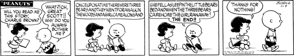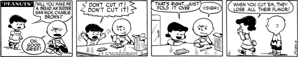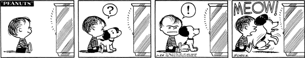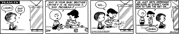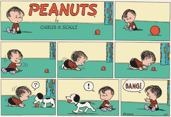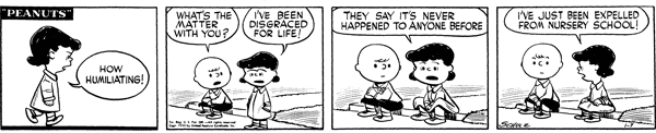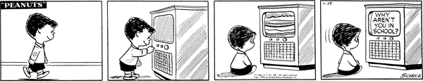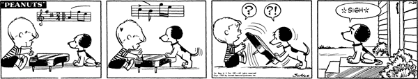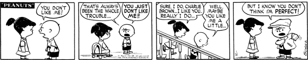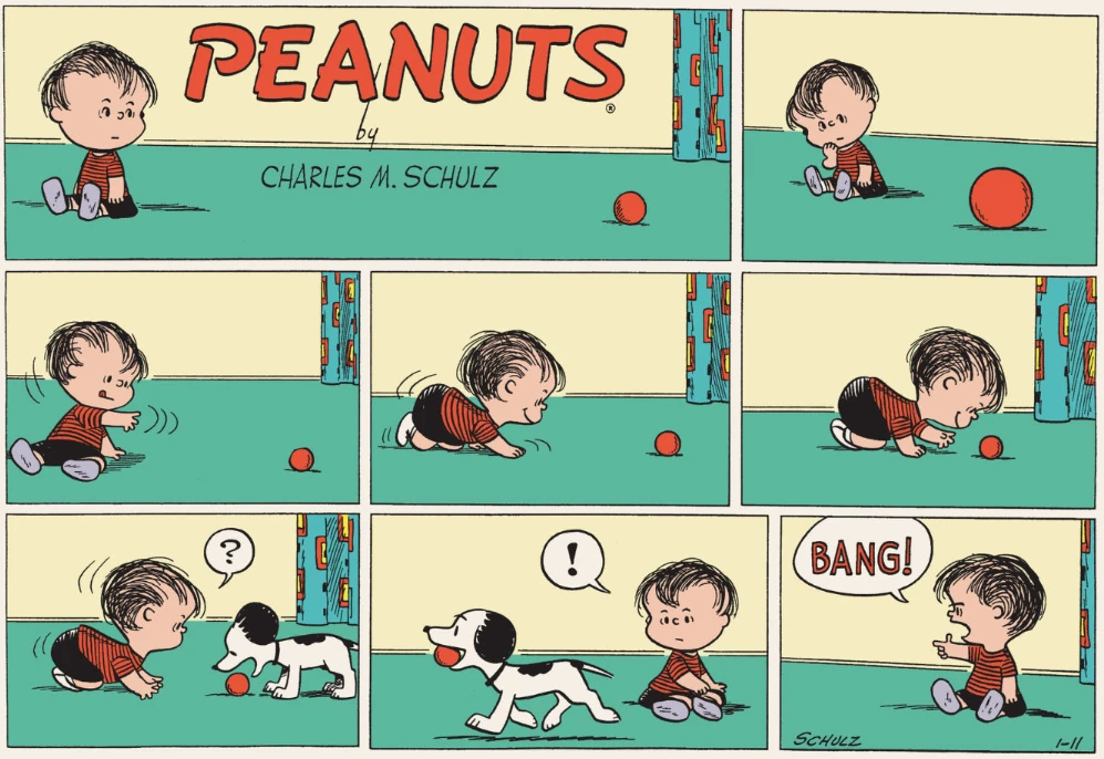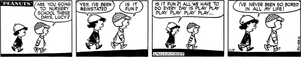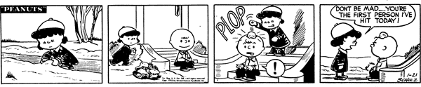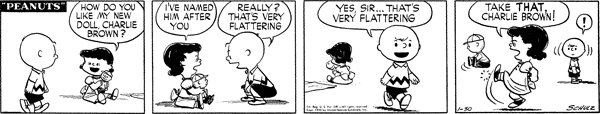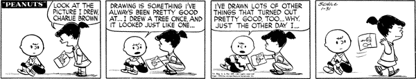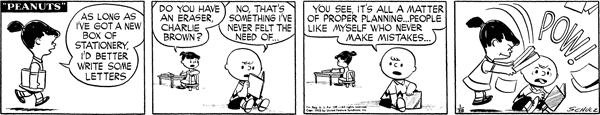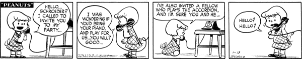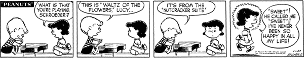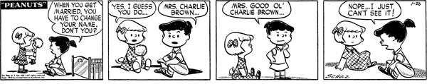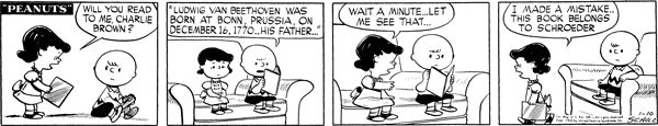 - January 27, 1953 (Lucy falls in love with Schroeder. She does not try to let the boy know how she feels about him until the strip from May 30, 1953)