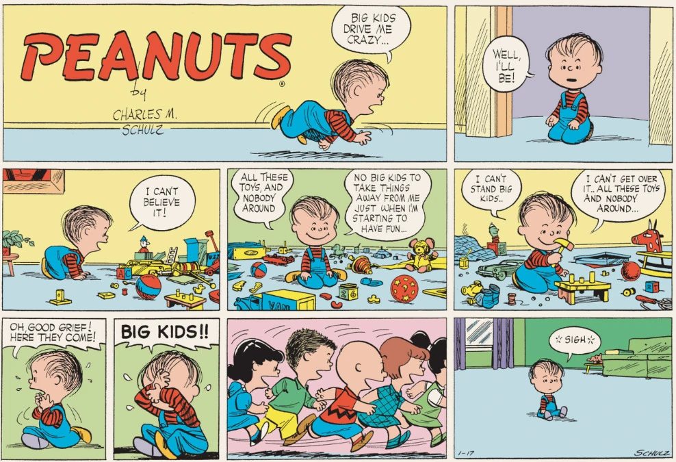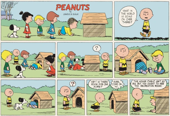 January 31, 1954 (Snoopy's doghouse is first revealed to be bigger on the inside than on the outside)