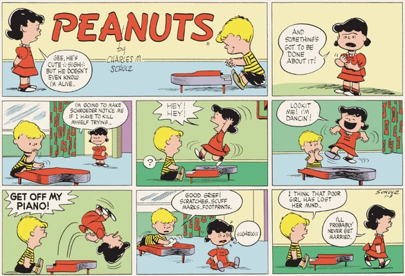 January 18, 1954 (According to this strip, January 18 is Schroeder's birthday. Although Beethoven's birthday would continue to be referenced throughout much of the strip's run, Schroeder's birthday would never be referred to again)