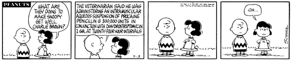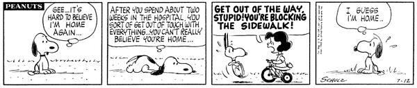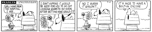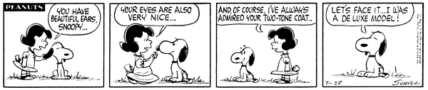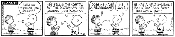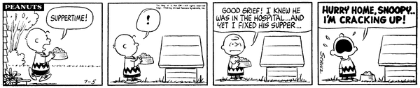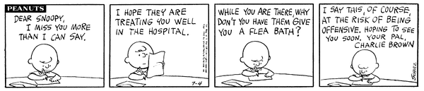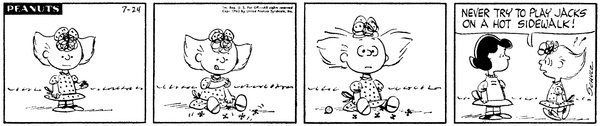 - July 4, 1963 (This strip is used on the page for March 28 of the Dayspring Peanuts A Year's Worth of Smiles and Blessings Desk Calendar)