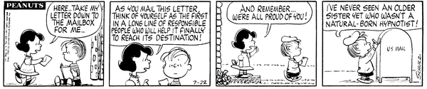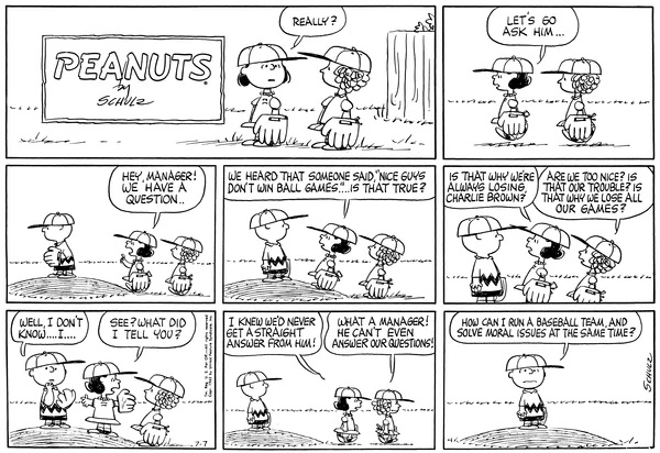 - July 30, 1963 (This strip is adapted in Charlie Brown's All-Stars)
