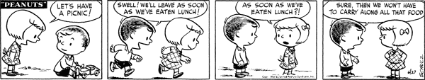 - June 18, 1951 (This gag is recycled from the Li'l Folks strip from July 6, 1947)