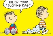 Rerun has often expressed embarrassment at Linus' dependency on his blanket. In one strip, he tells Linus and Lucy that when other children ask him if his older brother carries a security blanket, he responds by claiming to be an only child. In other strips, he has told both Linus and Snoopy that he is unable to view Linus as a role model because of the blanket. Rerun has even gone so far as to taunt Linus by referring to the blanket as his "sucking rag." Rerun also refuses to bring a blanket for nap time to his kindergarten class, telling his teacher that Linus is the only one in his family to carry a blanket, and that he does not wish to end up like his brother.
