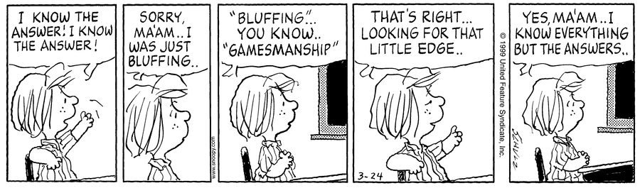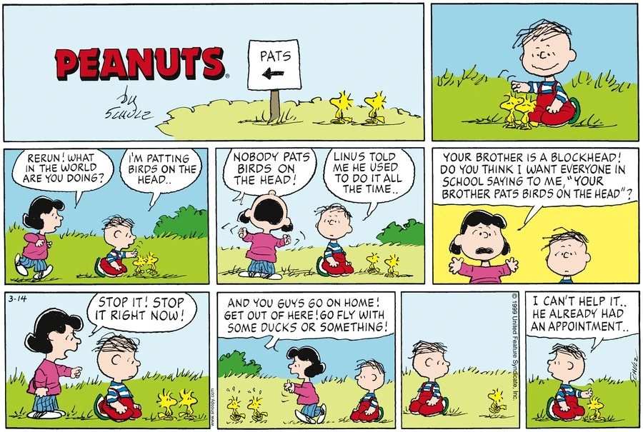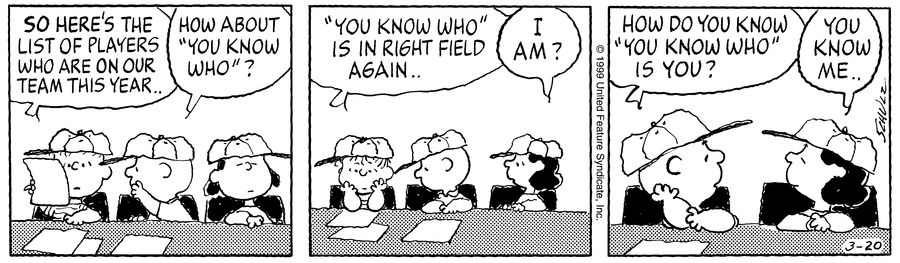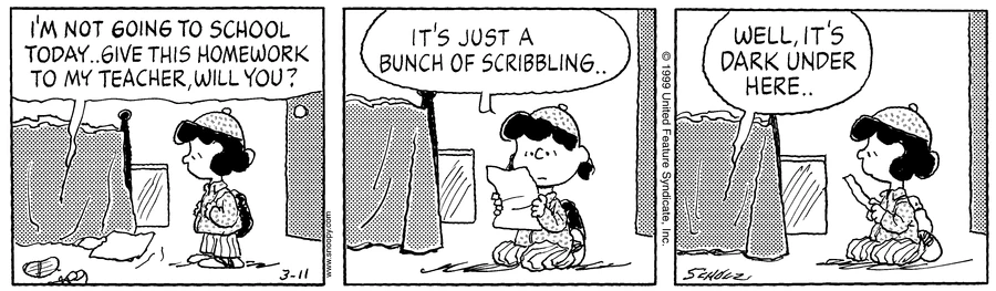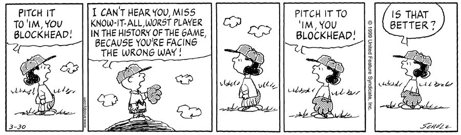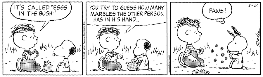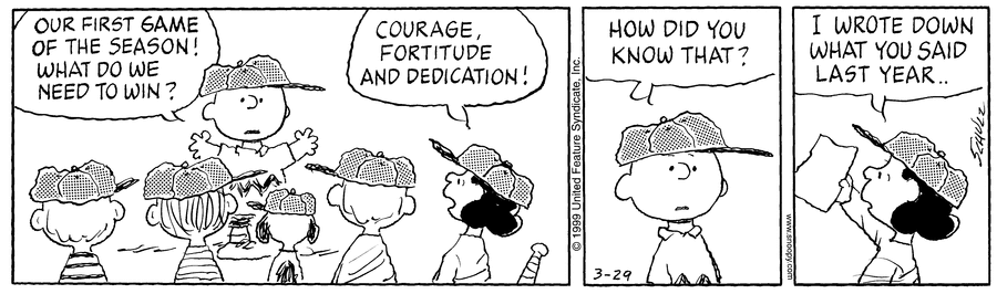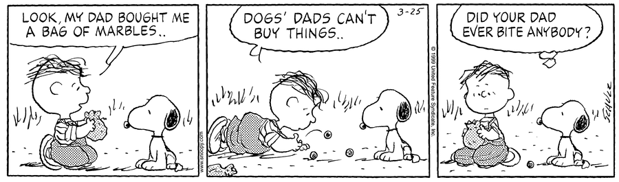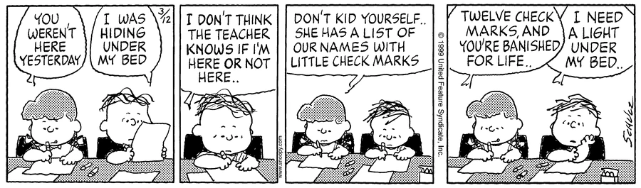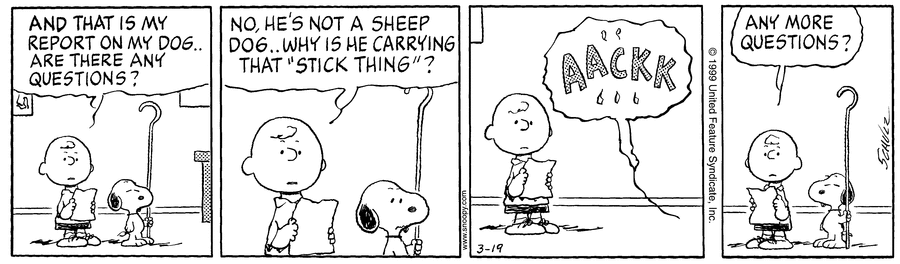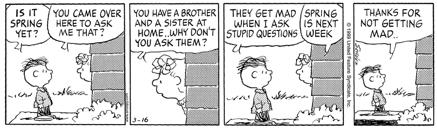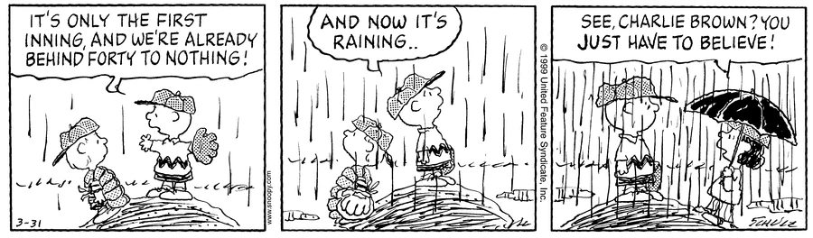 March 15, 1999 (This strip is used on the page for November 8 of the Dayspring Peanuts: A Year's Worth of Smiles and Blessings Desk Calendar )