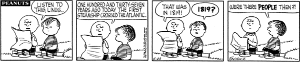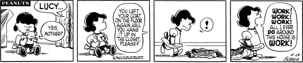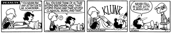 - May 1, 1956 (The first time that Schroeder forces Lucy off his piano)