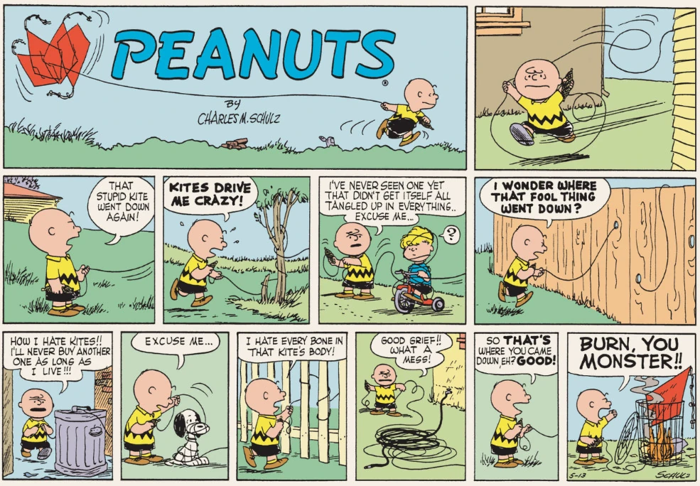 - May 8, 1956 (This strip and the following strip are adapted in Good Grief, Charlie Brown: Peanuts)