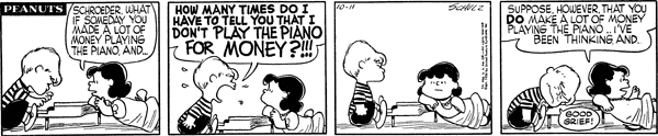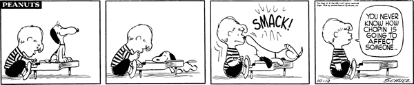 October 12, 1956 (This strip is adapted in Play It Again, Charlie Brown . In the special, Schroeder plays Beethoven instead of Chopin)