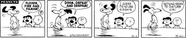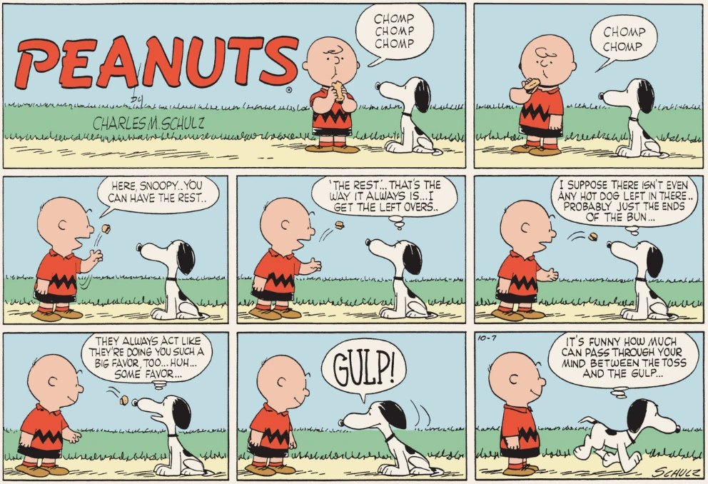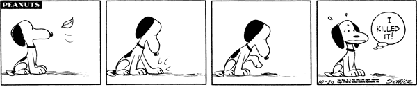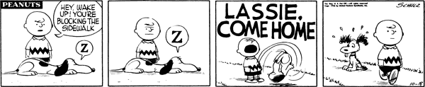 October 1, 1956 (This strip and the following three strips including October 6, 1956 are adapted in the episode "A Day with Snoopy " from the 2014 French TV series Peanuts )