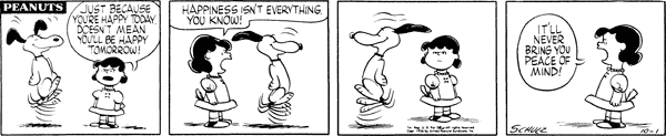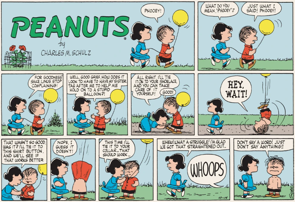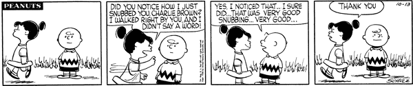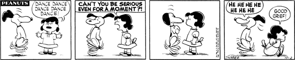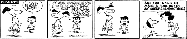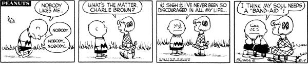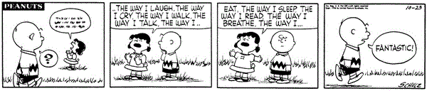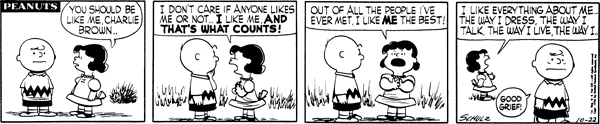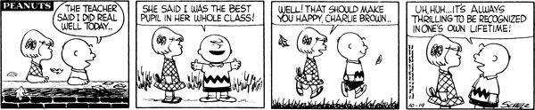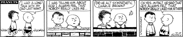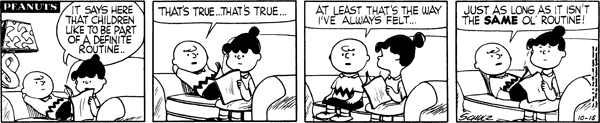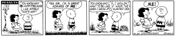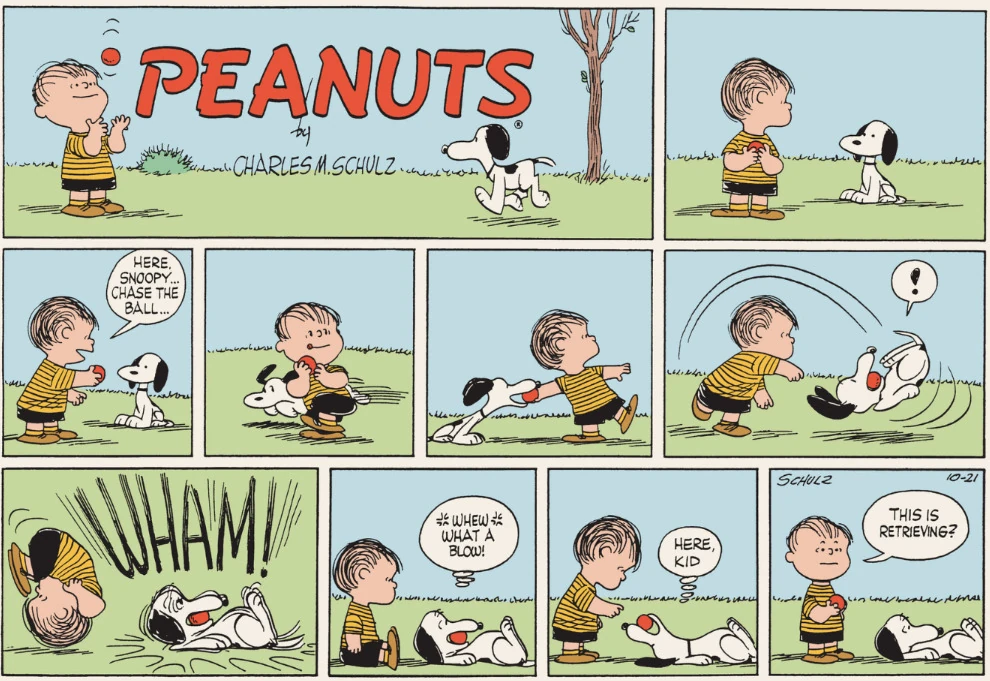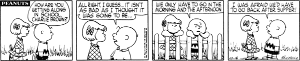 October 22, 1956 (This strip and the following three strips are adapted in Good Grief, Charlie Brown: Peanuts )