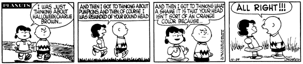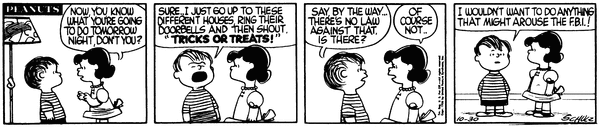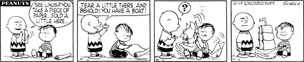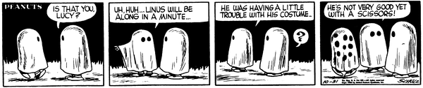 October 31, 1956 (This strip is adapted in It's the Great Pumpkin, Charlie Brown , although Charlie Brown , not Linus , is the ghost who had trouble with the scissors)