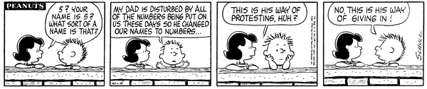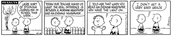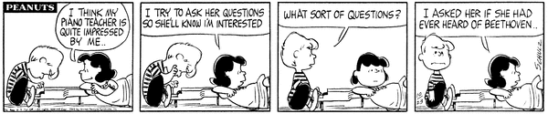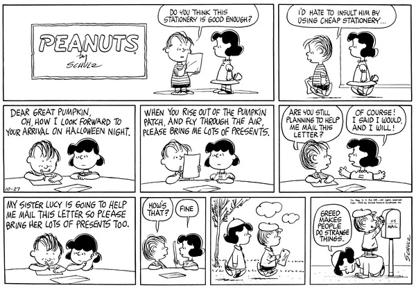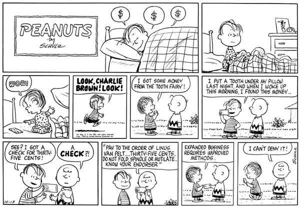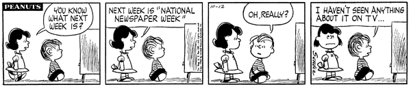October 13, 1963 (This strip is adapted in the episode "Out of Order" from the 2014 French TV series Peanuts)