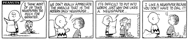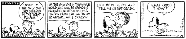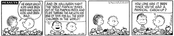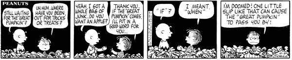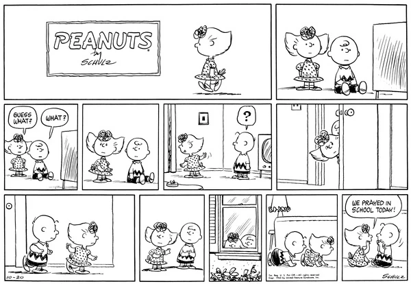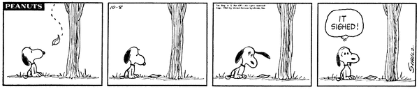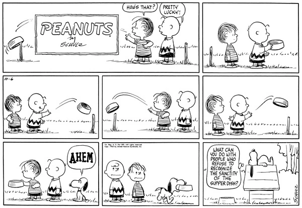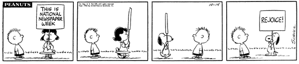 October 20, 1963 (This strip and the second following strip are used on the pages for September 6 [October 22, 1963] and October 17 [October 20, 1963] of the Dayspring Peanuts: A Year's Worth of Smiles and Blessings Desk Calendar)