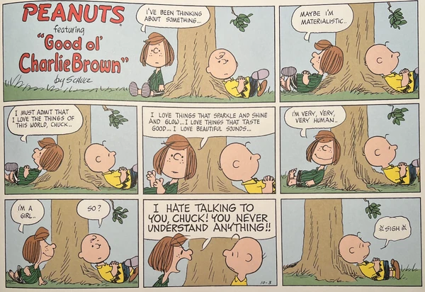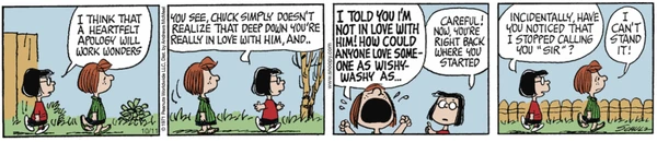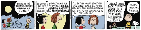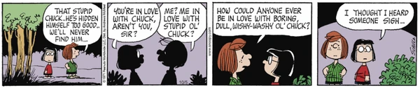 - October 8, 1971 (This strip and the following strip are loosely adapted in There's No Time for Love, Charlie Brown)