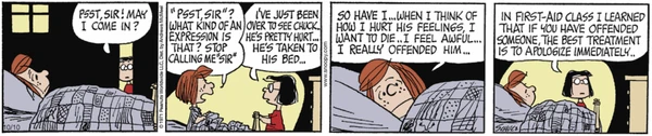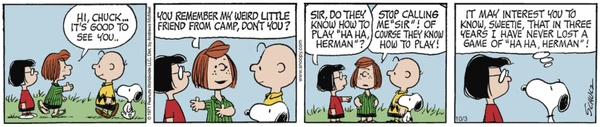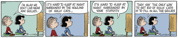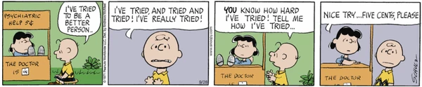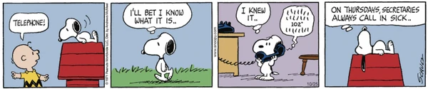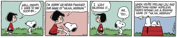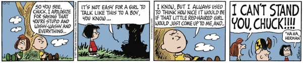 - October 17, 1971 (This strip is adapted in the episode "It's Just No Good" from the 2014 French TV series Peanuts)