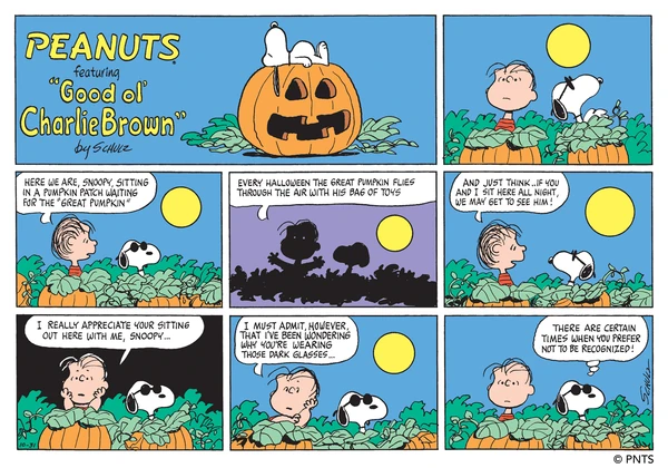 - October 31, 1971 (This strip is adapted in the song "The Vigil" from Snoopy!!! The Musical)