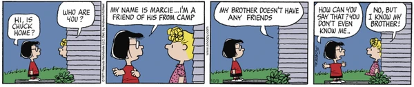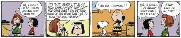 - October 11, 1971 (Marcie, who first appeared in the strip on July 20, 1971, is named)