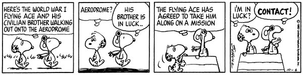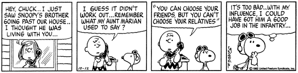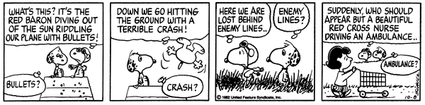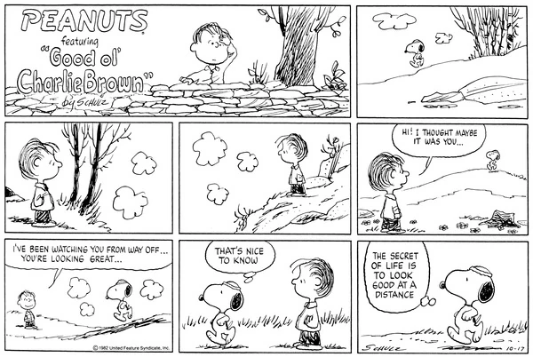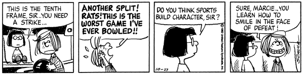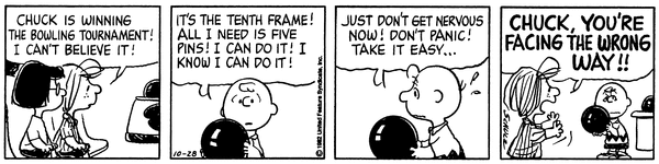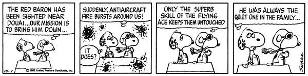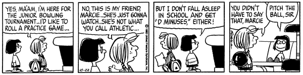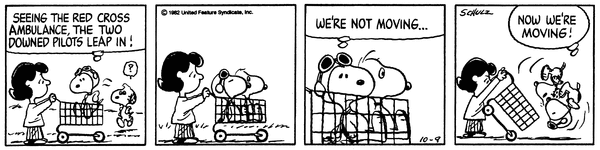 - October 10, 1982 (Football gag for 1982. This strip is adapted in the segment "Football" from the 1983 The Charlie Brown and Snoopy Show episode "Chaos in the Classroom")