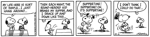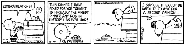 - October 6, 1982 (This strip and the following two strips are adapted in I Want a Dog for Christmas, Charlie Brown)