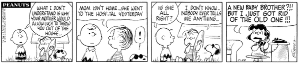 Lucy learns she has a youngest brother in the strip from May 23, 1972.