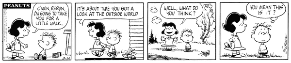 - Rerun outlasts Lucy and Linus in the comic strip, appearing in two of the last Sunday strips.