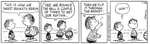 Perhaps the most common joke used about Rerun refers to his poor basketball skills. Linus first introduces Rerun to