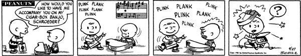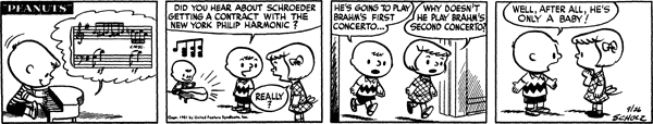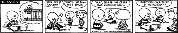 - September 24, 1951 (The first time Schroeder plays a toy piano. The piece played is actually by Rachmaninoff, not by Beethoven)