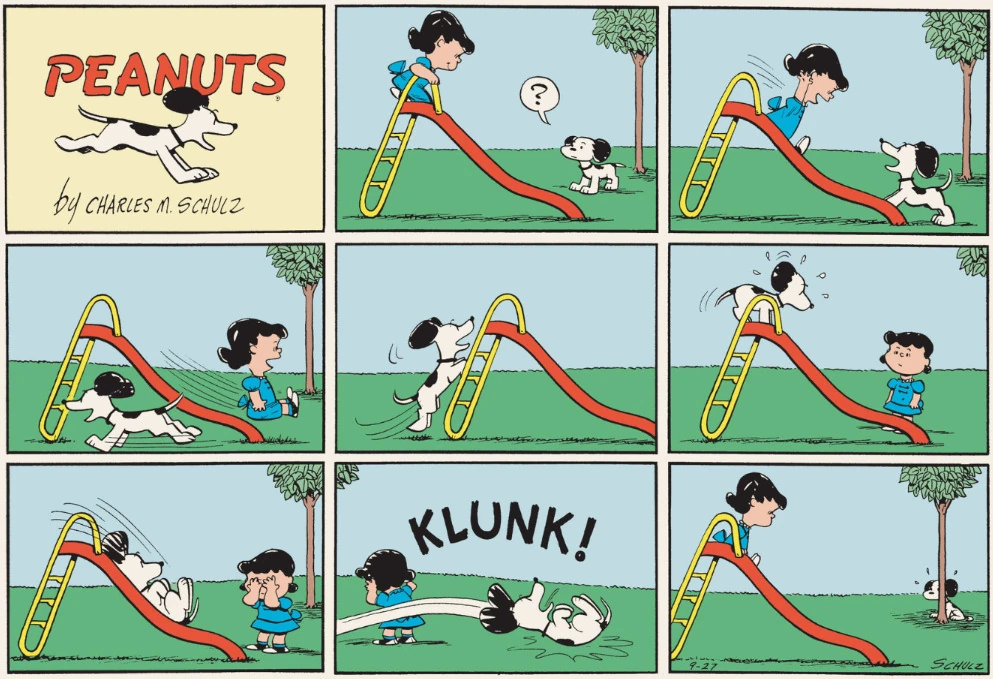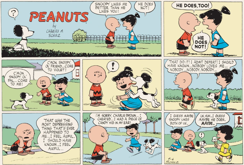 - September 30, 1953 (This strip is adapted in Good Grief, Charlie Brown: Peanuts)