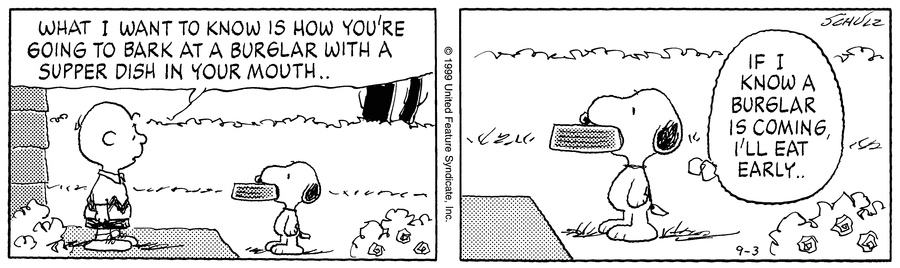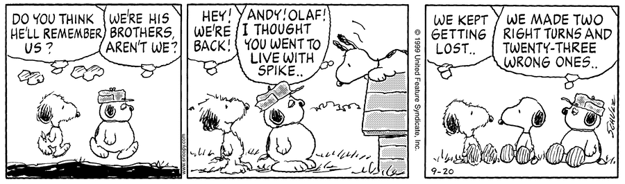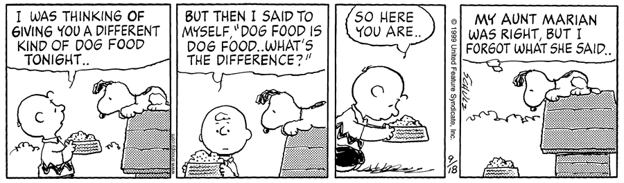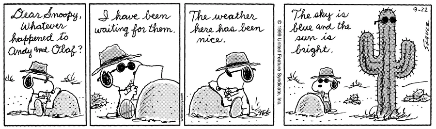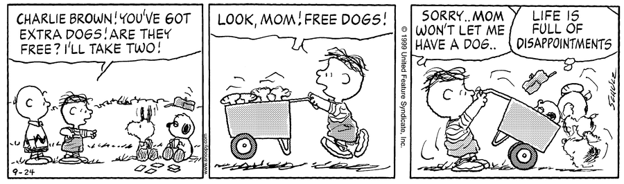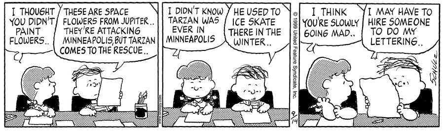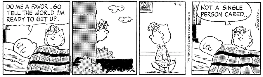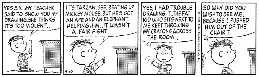 - September 12, 1999 (The final appearance of Schroeder, and Lucy's final interaction with him)