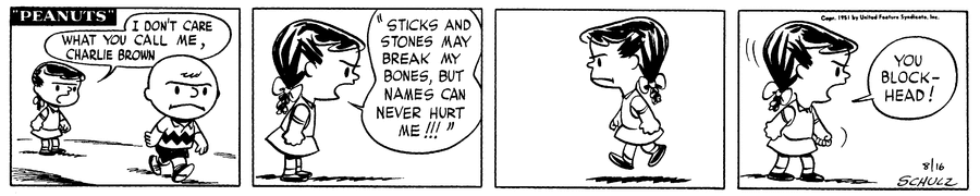 Violet becomes the first person to call Charlie Brown a "blockhead," on August 16, 1951