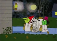Another example shows Patty and Violet reciting a very mean-spirited poem, pointing out that "Boys are rotten filled with cotton" and that "Girls are dandy filled with candy!" They then walk away smugly, where Charlie Brown retaliates with the phrase, "Generalities!!!"