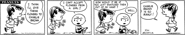 Violet is impressed by Charlie Brown's masculinity in the strip from July 20, 1951.